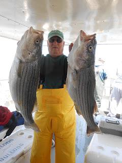 Headed out today hoping for the best after struggling most of the week. I knew the bite would happen again and I was praying that this full moon would get the Stripers started again. I know many people gave up on the Stripers and were going for the Fluke instead, and I did not want to switch over yet, but I have to pay the bills . On Tuesday a couple of die hard Striper men who usually come out with me for Stripers went on another boat for Fluke instead, I told them when the Stripers start biting again and we are pulling in 30 and 40 lbers I don't want to see you back over here, you can keep Fluking. Of course I was just kidding, Howard and Paul even though you lost faith I will take you back. A meatball sandwich wouldn't hurt. Anyway here is the report. It was a excellent day with some nice size fish, Boat limit early, played catch and release for awhile and we left them biting and docked early, Now the bad news, as of now they are talking NW wind for tomorrow with gusts to 35 if that's the case we will be staying dockside Saturday and hopefully the wind will decrease for Sunday. I will wait for the updated forecast later tonight